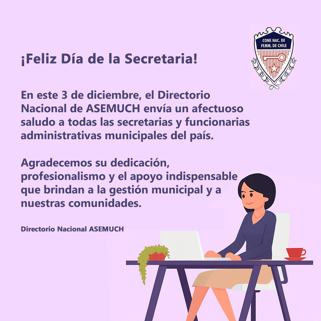 En este 3 de diciembre, el Directorio Nacional de la Asociación de Funcionarios y Funcionarias Municipales de Chile, ASEMUCH, quiere expresar su más profundo reconocimiento a todas las secretarias y funcionarias administrativas municipales que cada día sostienen, organizan y dan vida al trabajo en nuestros municipios.
